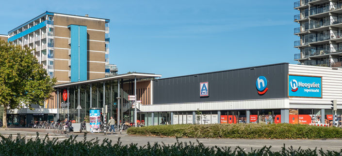 Resultaat: een evenwichtig winkelcentrum met duidelijke structuur, logische routes en sterke ‘trekkers’ aan beide zijden – Hoogvliet en Action aan de ene kant, Albert Heijn aan de andere. Zo ontstaat er een natuurlijke loop die de verblijfskwaliteit en het commercieel functioneren versterkt.